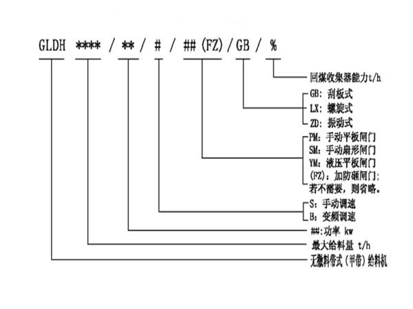 無撒料帶式(甲帶)給料機型號說明: