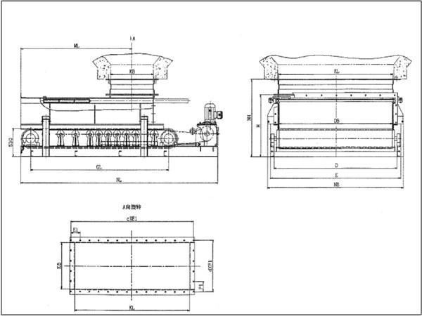 加寬加長帶式(甲帶)給料機的外形及連接尺寸: