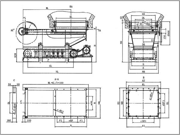 防砸閥門帶式(甲帶)給料機的外形及連接尺寸: