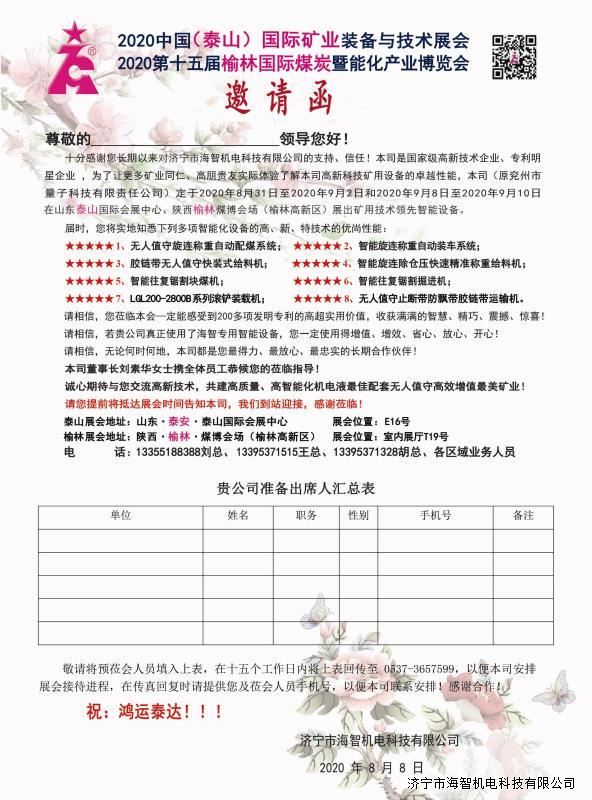 > 邀請函:2020中國(泰山)國際礦業裝備與技術展覽會